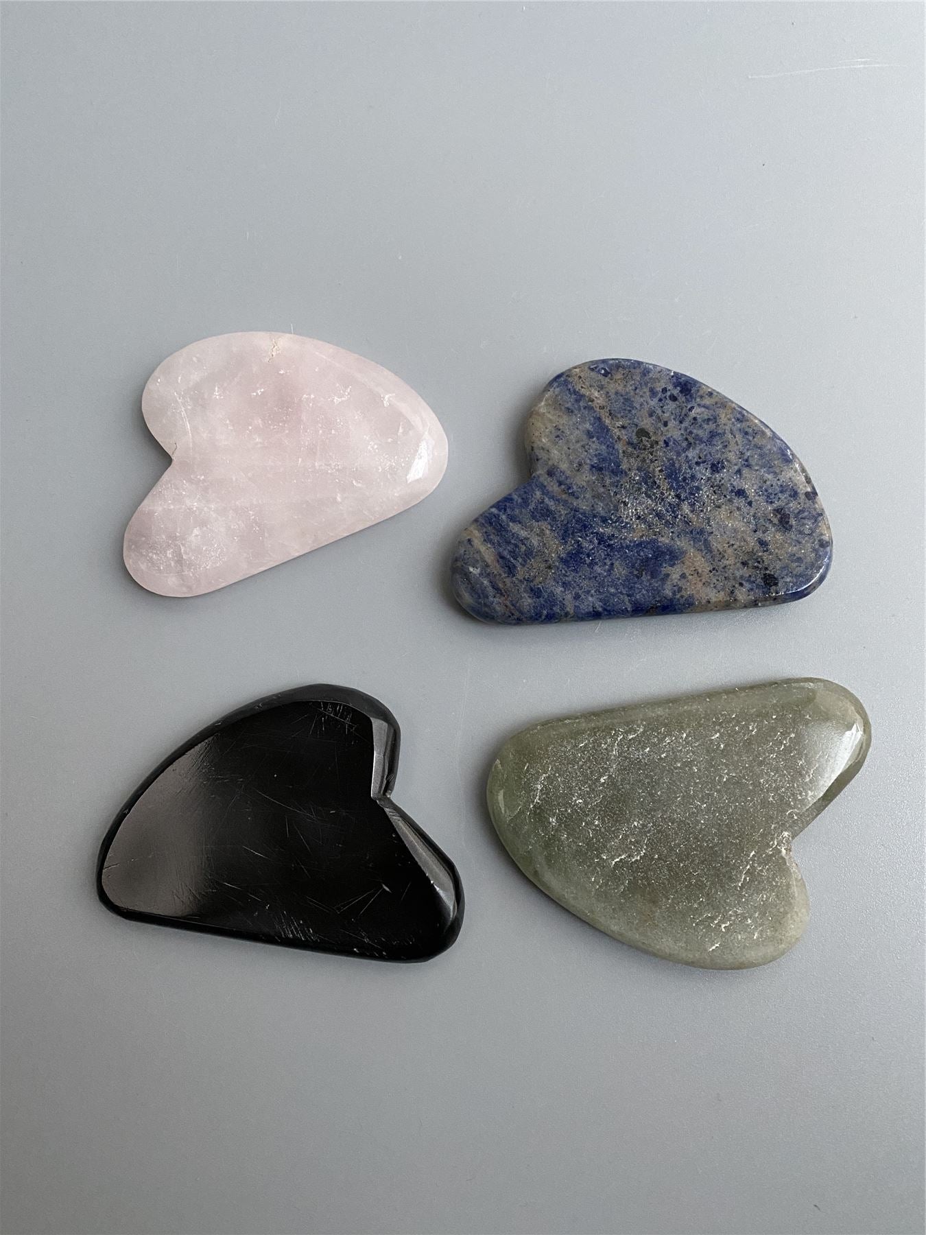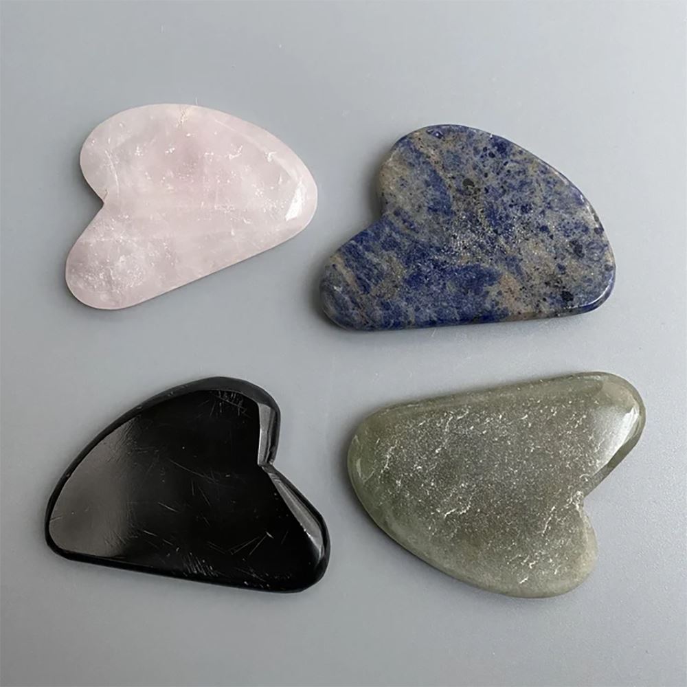Gemstone Gua Sha tool in classic 8x5cm shape. Ideal for facial massage and skincare rituals. A must-have wellness accessory for beauty and gift retailers.