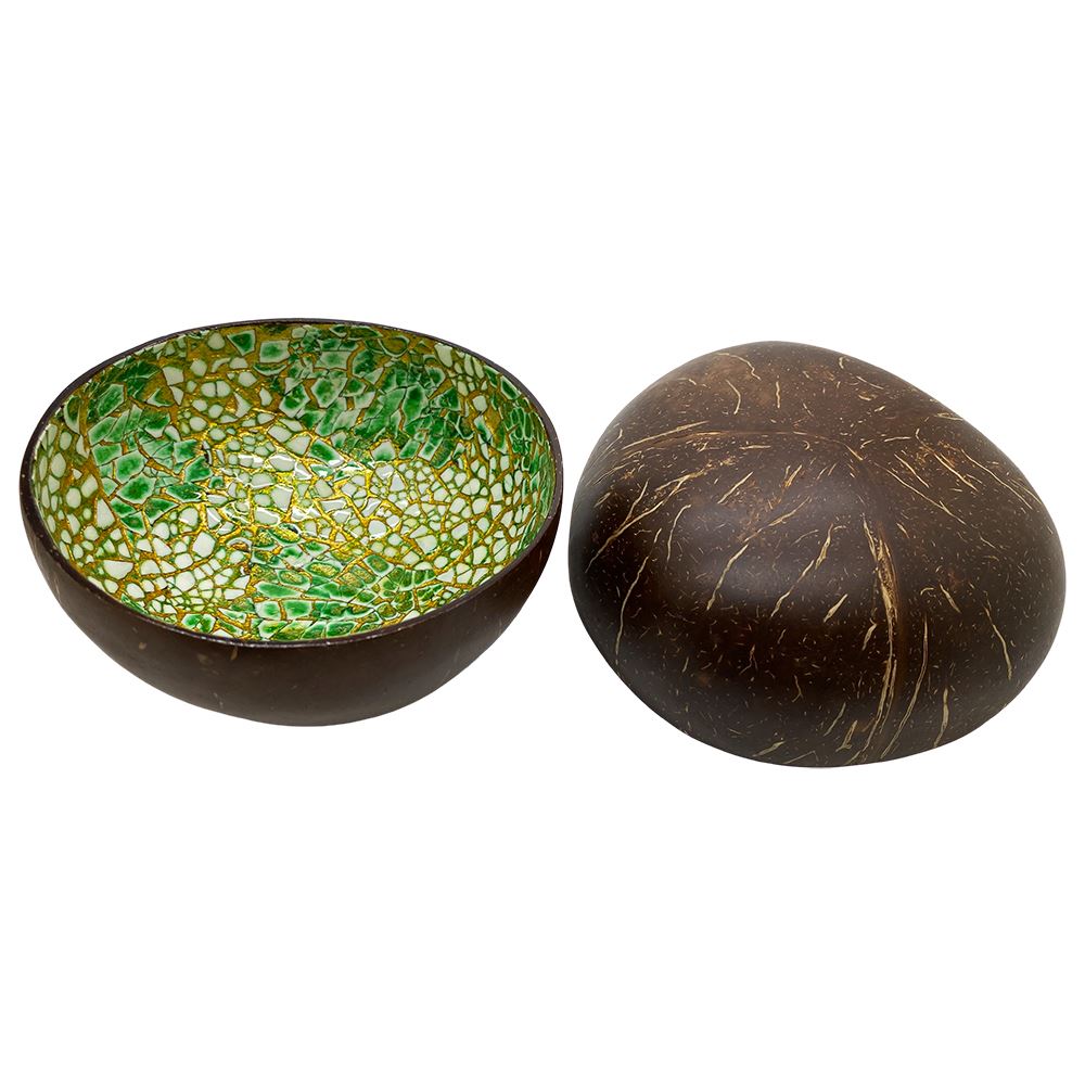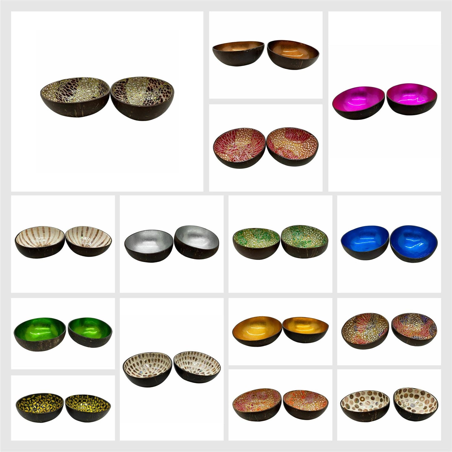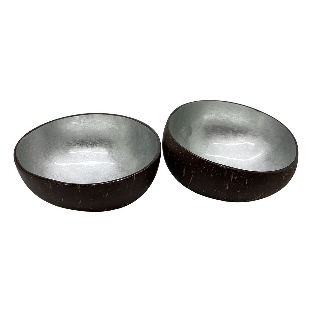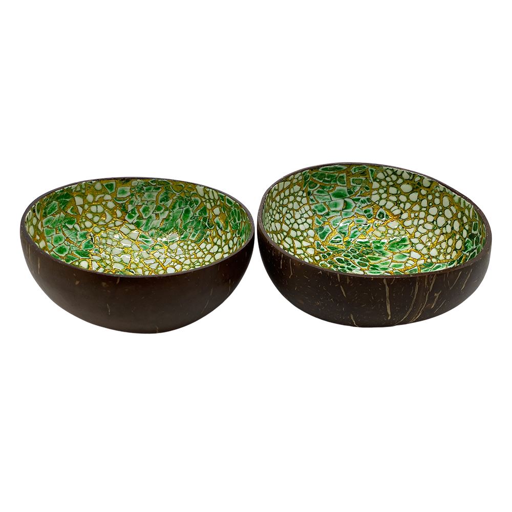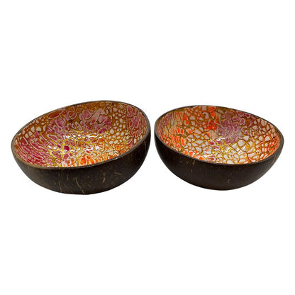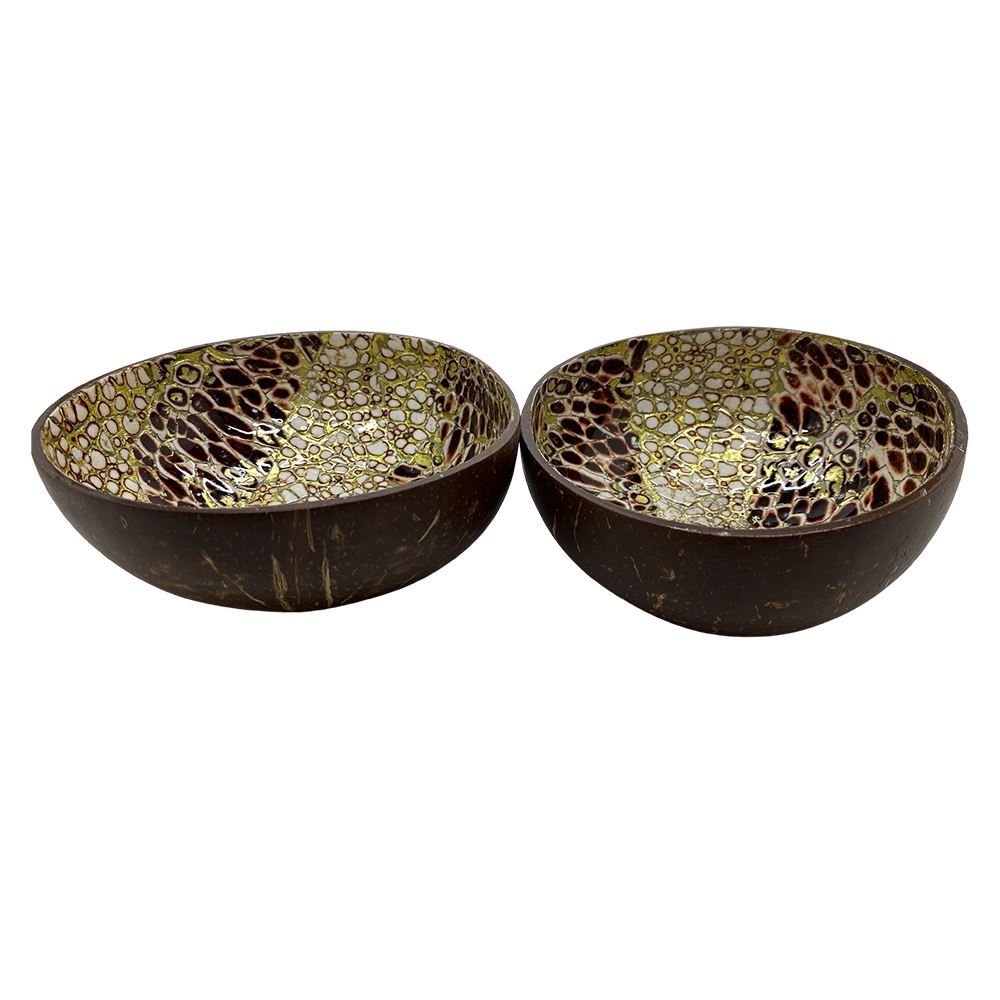 Hand-Painted Coconut Bowls, Lacquered, Set of 2