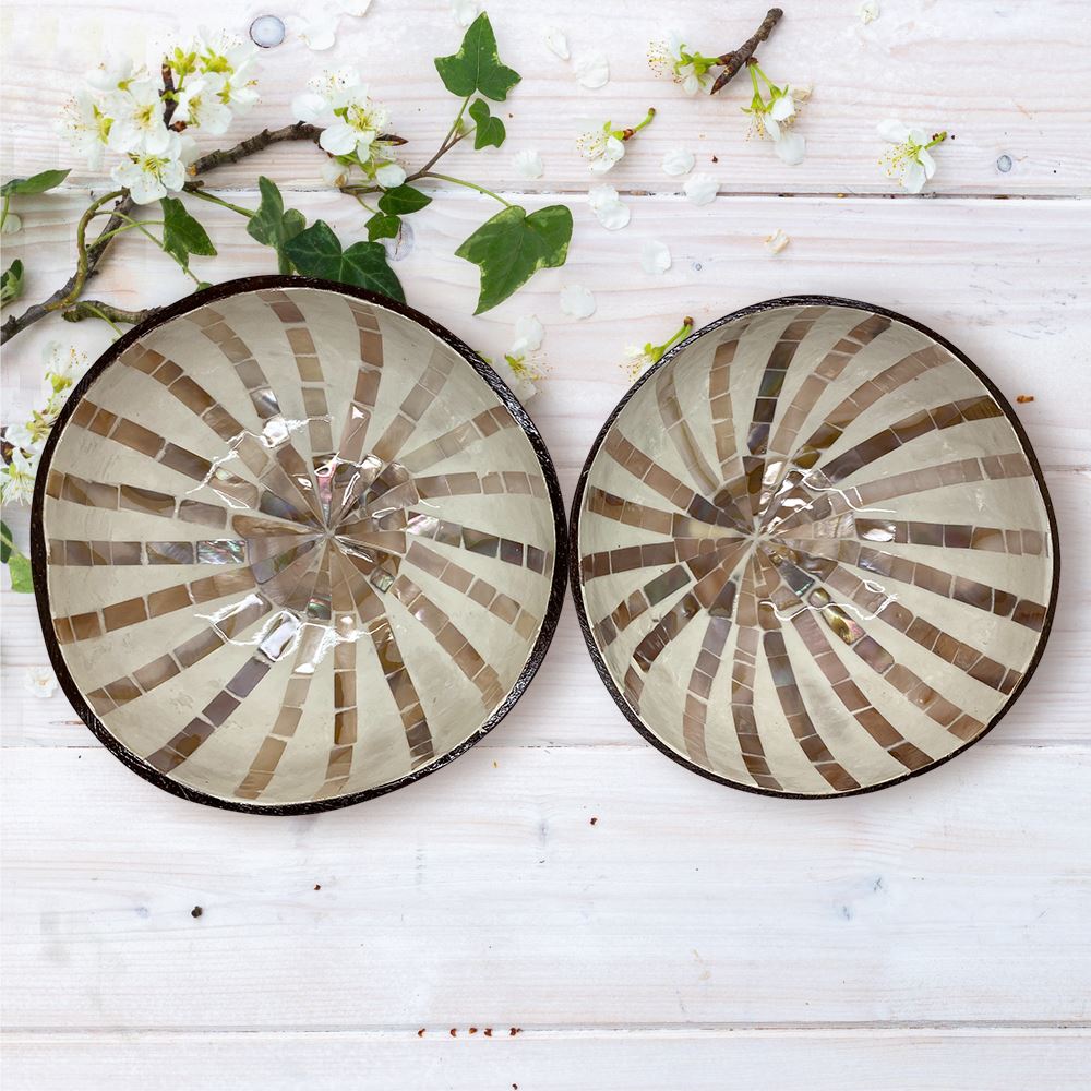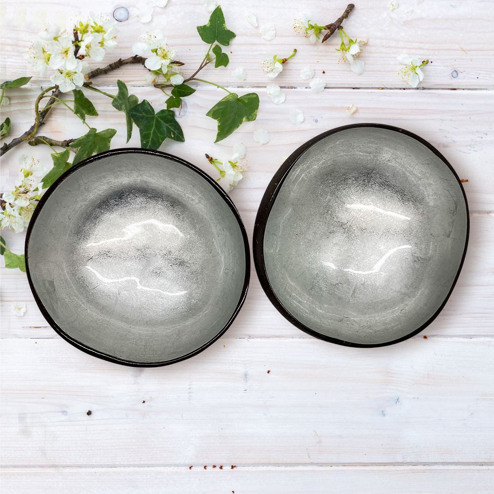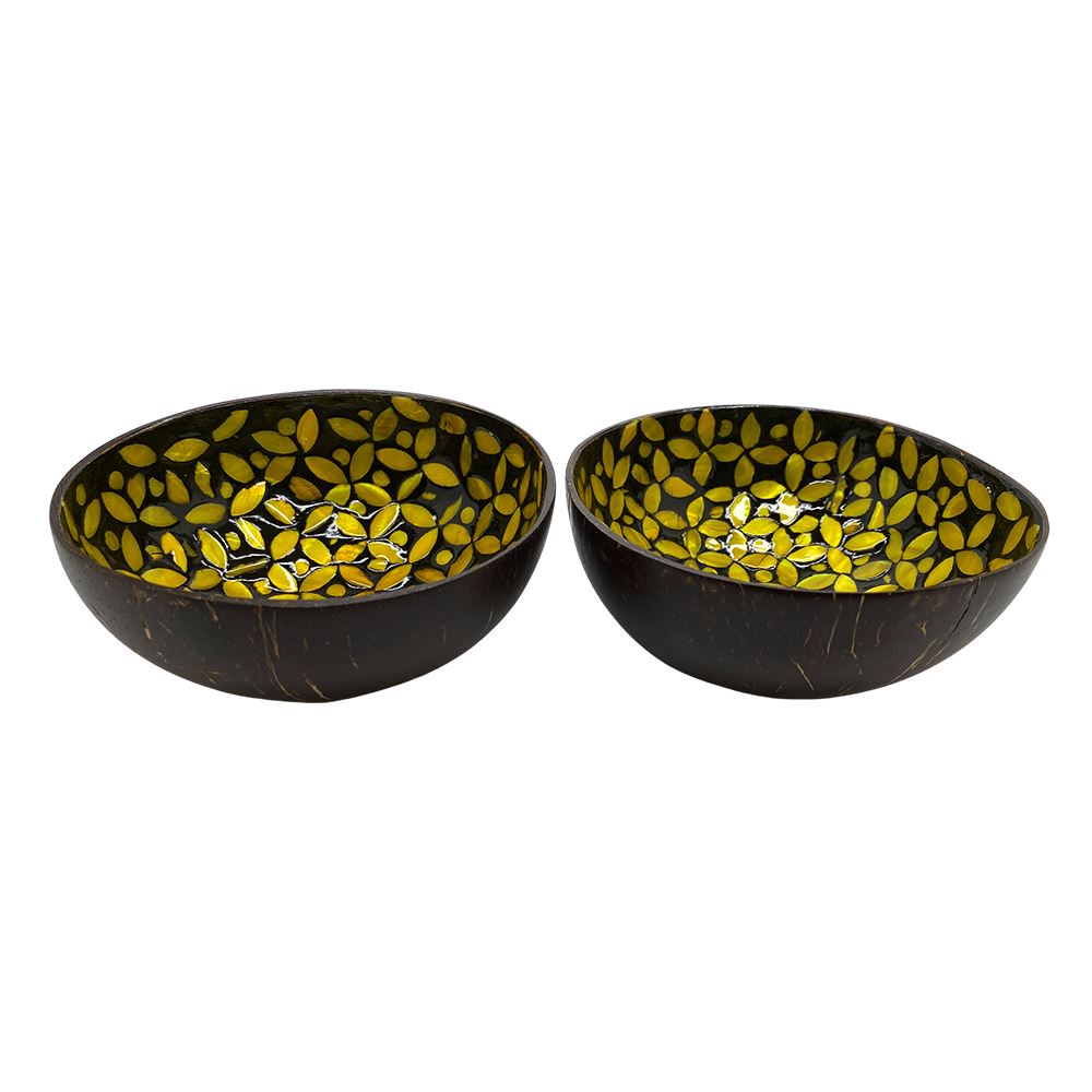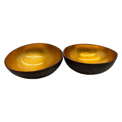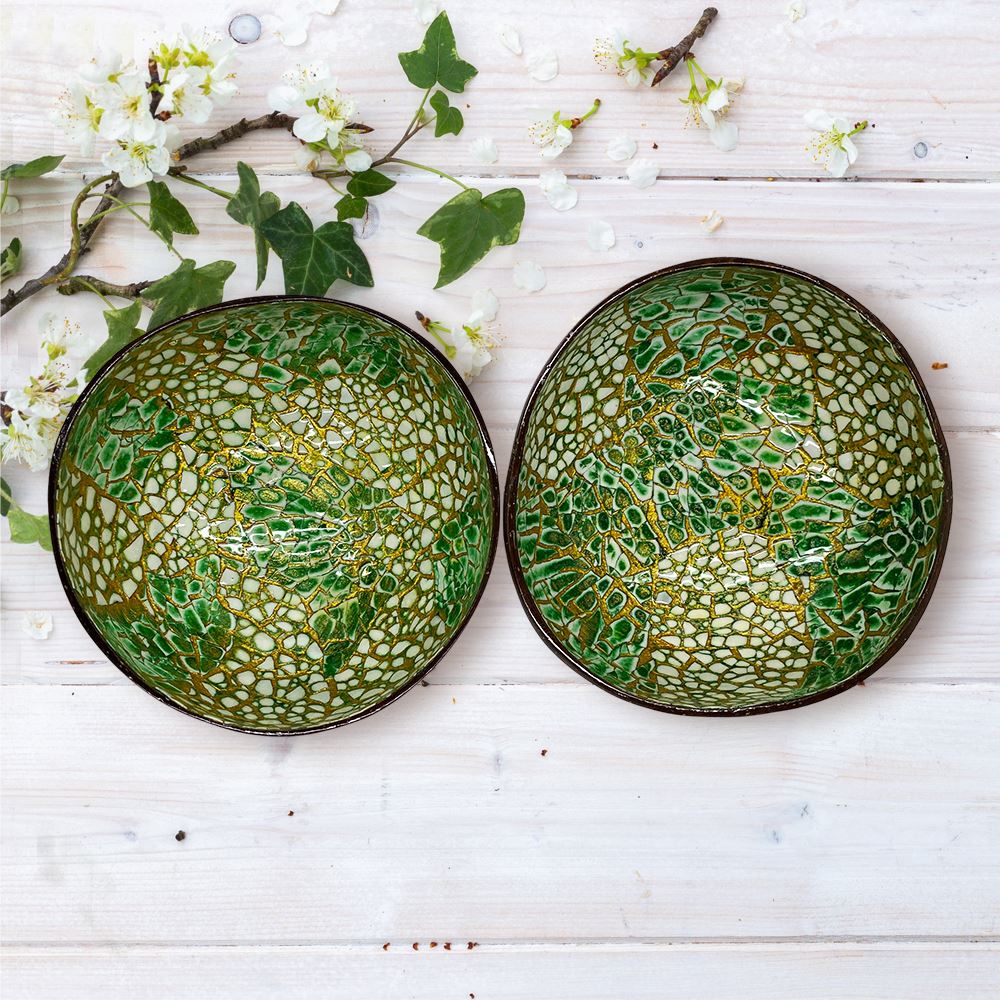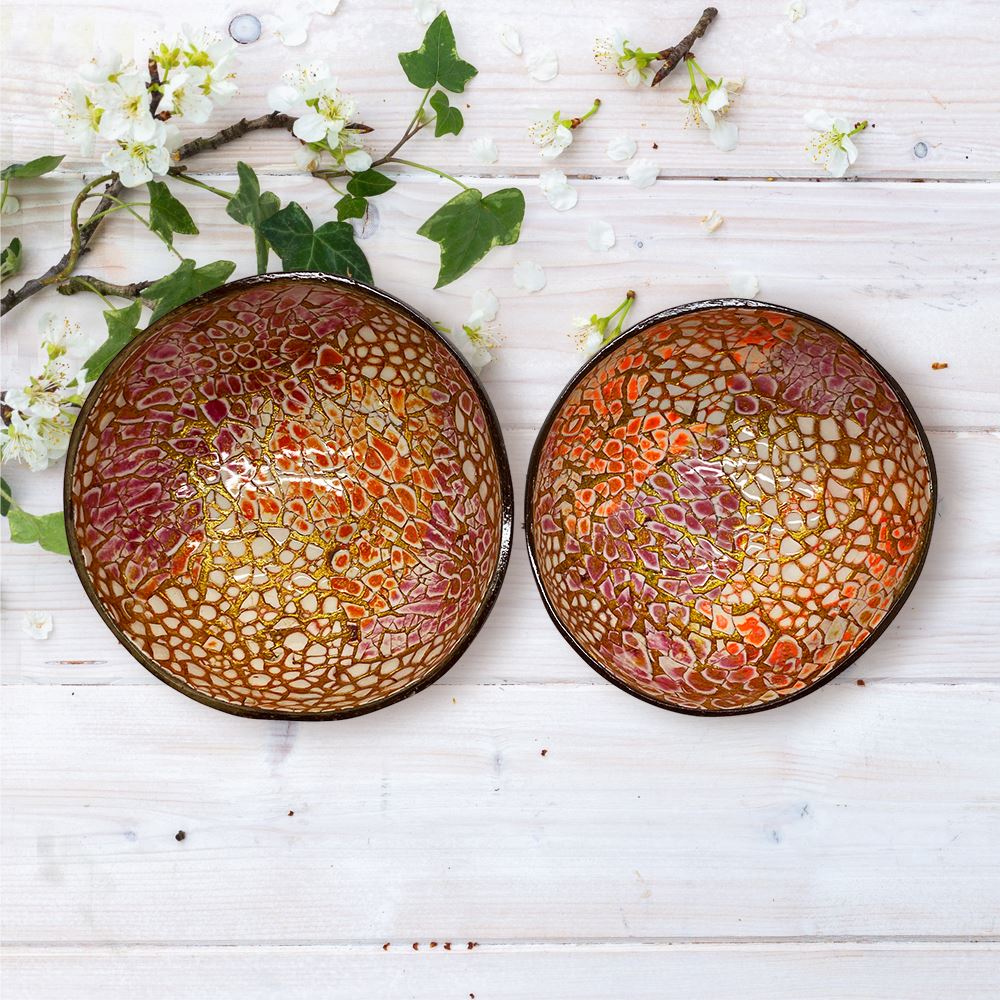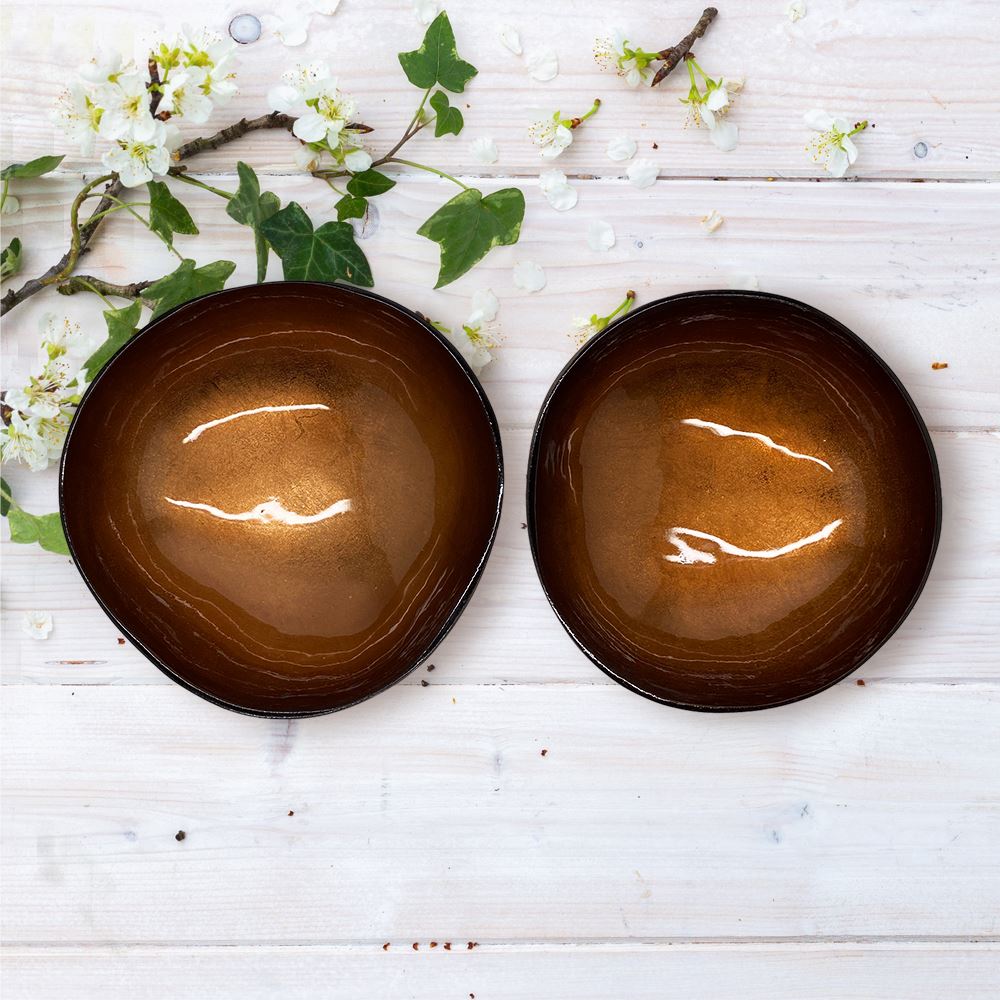Hand-Painted Coconut Bowls, Lacquered, Set of 2