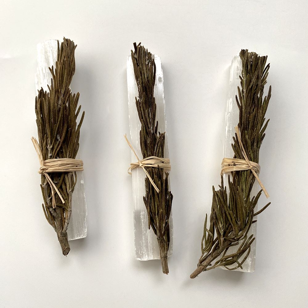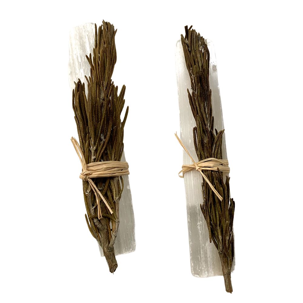 Mini Smudge Cluster, Rosemary with Selenite Wand 4"