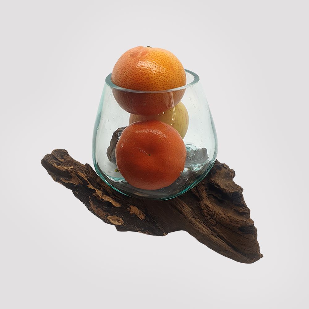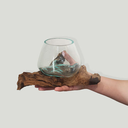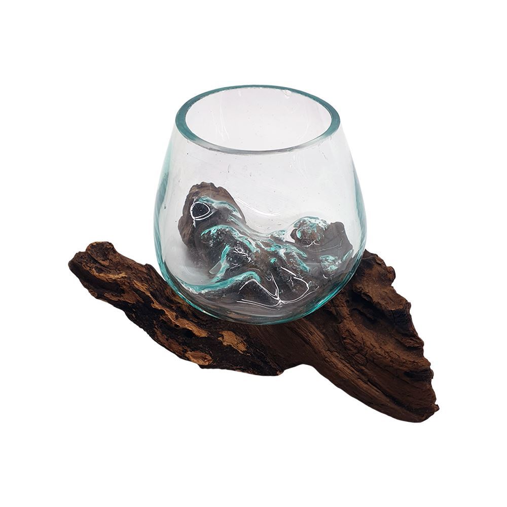 Molten Glass Terrarium on Balinese Gamal Wood, Bowl, 12cm Height