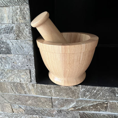 Upgrade your kitchen essentials with our beautiful Mortar and Pestle set crafted from light wood. The pestle measures 16x4cm, while the mortar is 11x14.5cm with an inner diameter of 11cm, providing ample space for grinding and mixing spices, herbs, and more. This set is not only highly functional but also brings a natural and clean aesthetic to your culinary space. Designed for durability and efficiency, this light wood mortar and pestle set is a must-have for anyone who loves cooking with fresh ingredients.