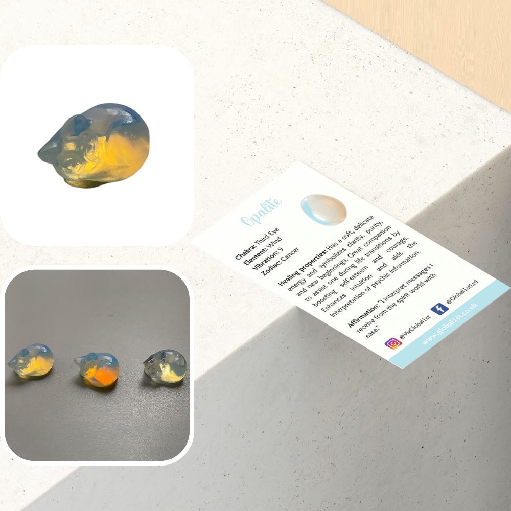 Unveil the enchanting beauty of Opalite Miniature Figurines, each a mesmerizing work of art. Meticulously crafted from Opalite, these figurines radiate a captivating ethereal glow. With intricate detailing and a petite size, they make delightful collectables or thoughtful gifts. Opalite is celebrated for its serene energy, promoting tranquillity and enhancing inner peace. Whether adorning your space or accompanying you on your spiritual journey, these figurines embody the timeless elegance and calming energy of Opalite.