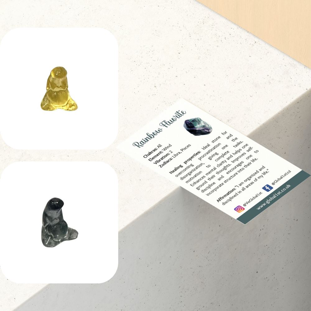 Rainbow Fluorite Mini Carving, Assorted Colour, 1.5x1cm, Single. Each crystal carving is one-of-a-kind, making it a fantastic addition to any crystal collection. These healing gemstones serve various purposes, promoting relaxation, peace, and harmony. They facilitate the flow of energy through the heart, foster positive thoughts to overcome difficulties and instil confidence. Portable and lightweight, they are easy to carry—simply put them in a pocket, bag, or purse. Every crystal is unique and hand-crafted, so carvings may slightly vary in size, colour, and shape.