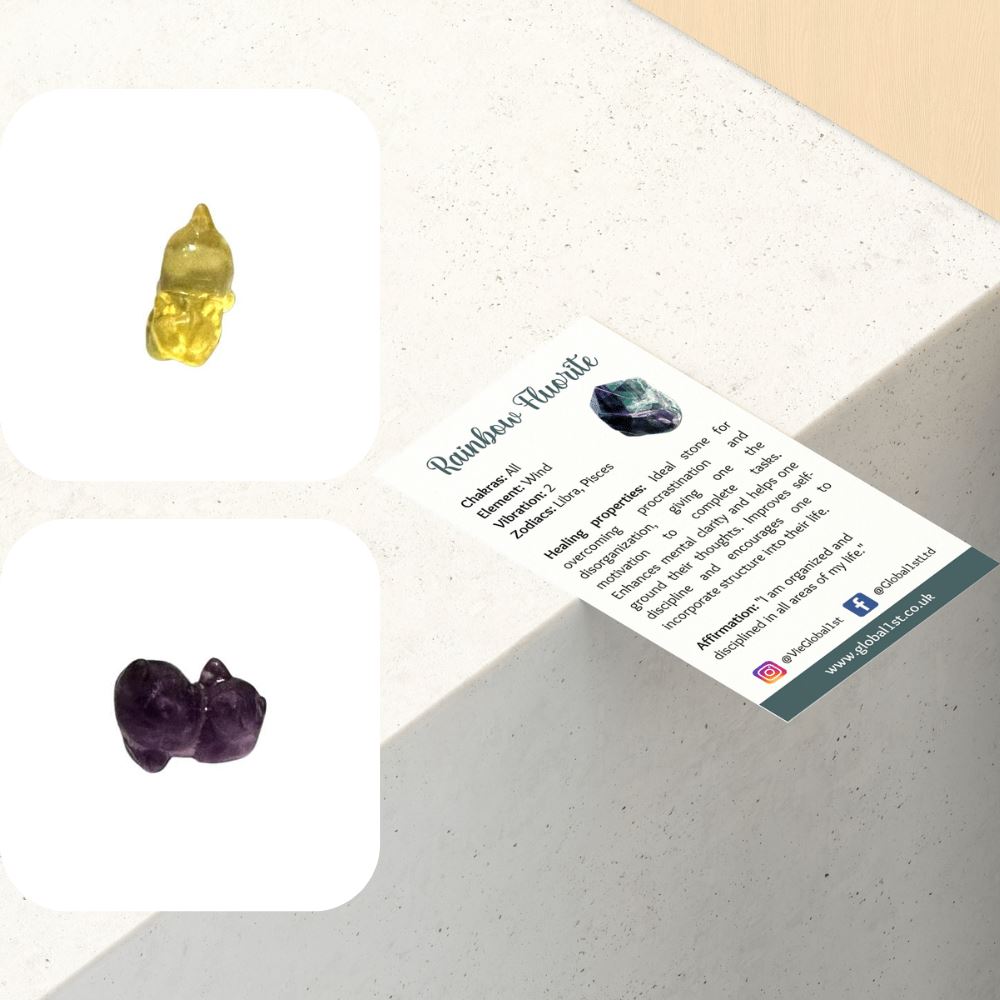 Rainbow Fluorite Mini Carving, Assorted Colour, 1.5x1cm, Single. Each crystal carving is one-of-a-kind, making it a fantastic addition to any crystal collection. These healing gemstones serve various purposes, promoting relaxation, peace, and harmony. They facilitate the flow of energy through the heart, foster positive thoughts to overcome difficulties and instil confidence. Portable and lightweight, they are easy to carry—simply put them in a pocket, bag, or purse. Every crystal is unique and hand-crafted, so carvings may slightly vary in size, colour, and shape.