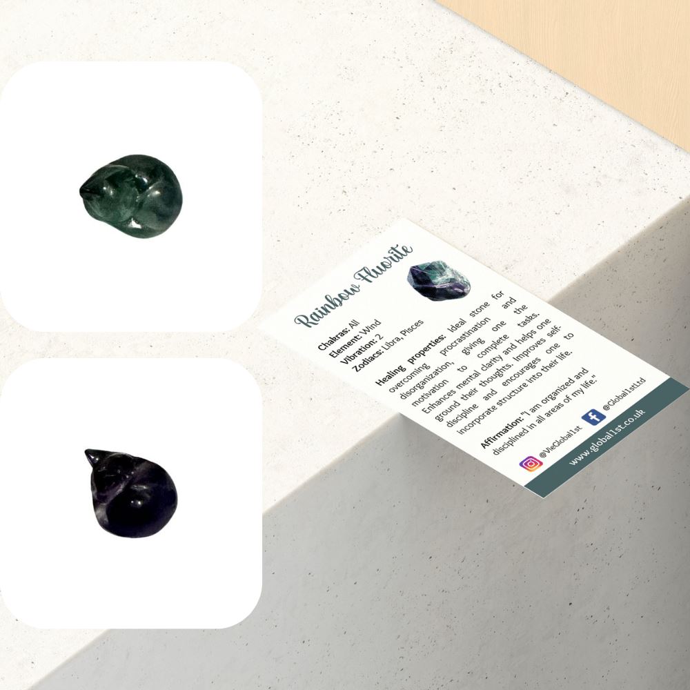 Rainbow Fluorite Mini Carving, Assorted Colour, 1.5x1cm, Single. Each crystal carving is one-of-a-kind, making it a fantastic addition to any crystal collection. These healing gemstones serve various purposes, promoting relaxation, peace, and harmony. They facilitate the flow of energy through the heart, foster positive thoughts to overcome difficulties and instil confidence. Portable and lightweight, they are easy to carry—simply put them in a pocket, bag, or purse. Every crystal is unique and hand-crafted, so carvings may slightly vary in size, colour, and shape.