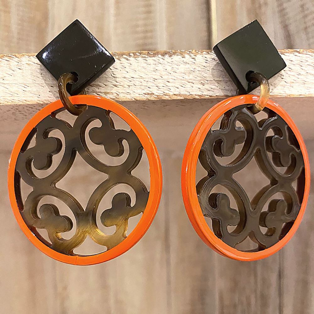 Add a touch of bohemian flair to your style with our Boho Buffalo Horn Earrings. Crafted from ethically sourced buffalo horn, these lightweight earrings are lacquered to create a smooth, glossy finish that enhances their natural beauty. Available in a variety of unique designs, they effortlessly combine elegance with individuality, making them a versatile accessory for any occasion. Length: 4.9 Centimetres; Drop length: 7.1 Centimetres; Width: 4.9 Centimetres.