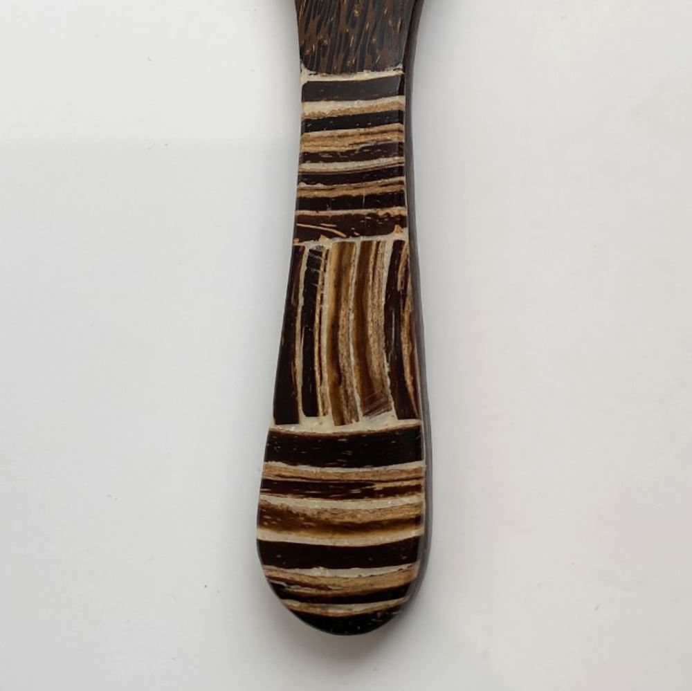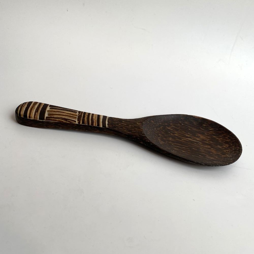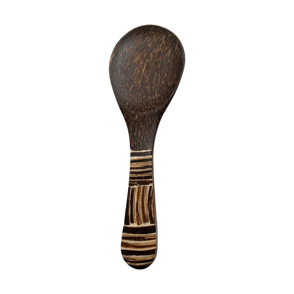Rice Scoop, Coconut Wood, 22x7cm. This large rice scoop is handcrafted from coconut wood. Each spoon has been skillfully hand-shaped to show the wood's natural beauty. Because of the unique techniques and crafting process, each utensil is truly one-of-a-kind with variations in wood colour and grain pattern from one piece to the next.