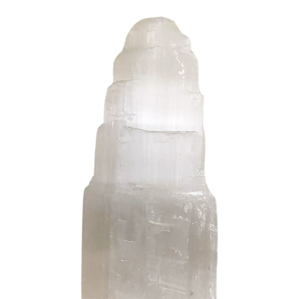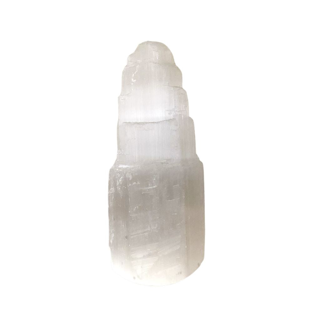 Selenite Mountain carved from pure selenite crystal, ideal for spiritual shops and wellness retailers. A striking piece known for its purifying energy and serene presence in any setting.