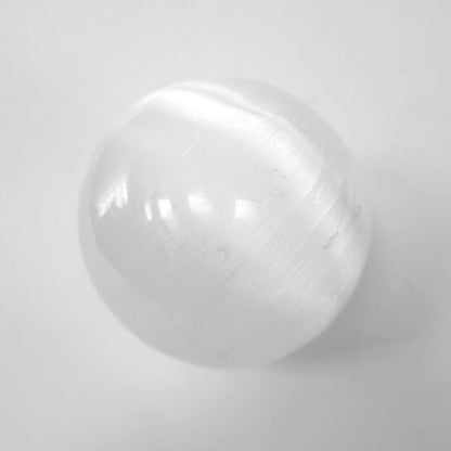 Polished Selenite Sphere carved from genuine selenite. Known for its calming energy and smooth finish, ideal for spiritual shops, wellness retailers, and home decor collections.