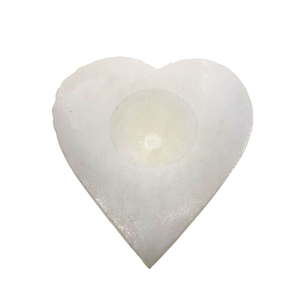 Selenite Tealight Holder, Heart, 10x10x3cm