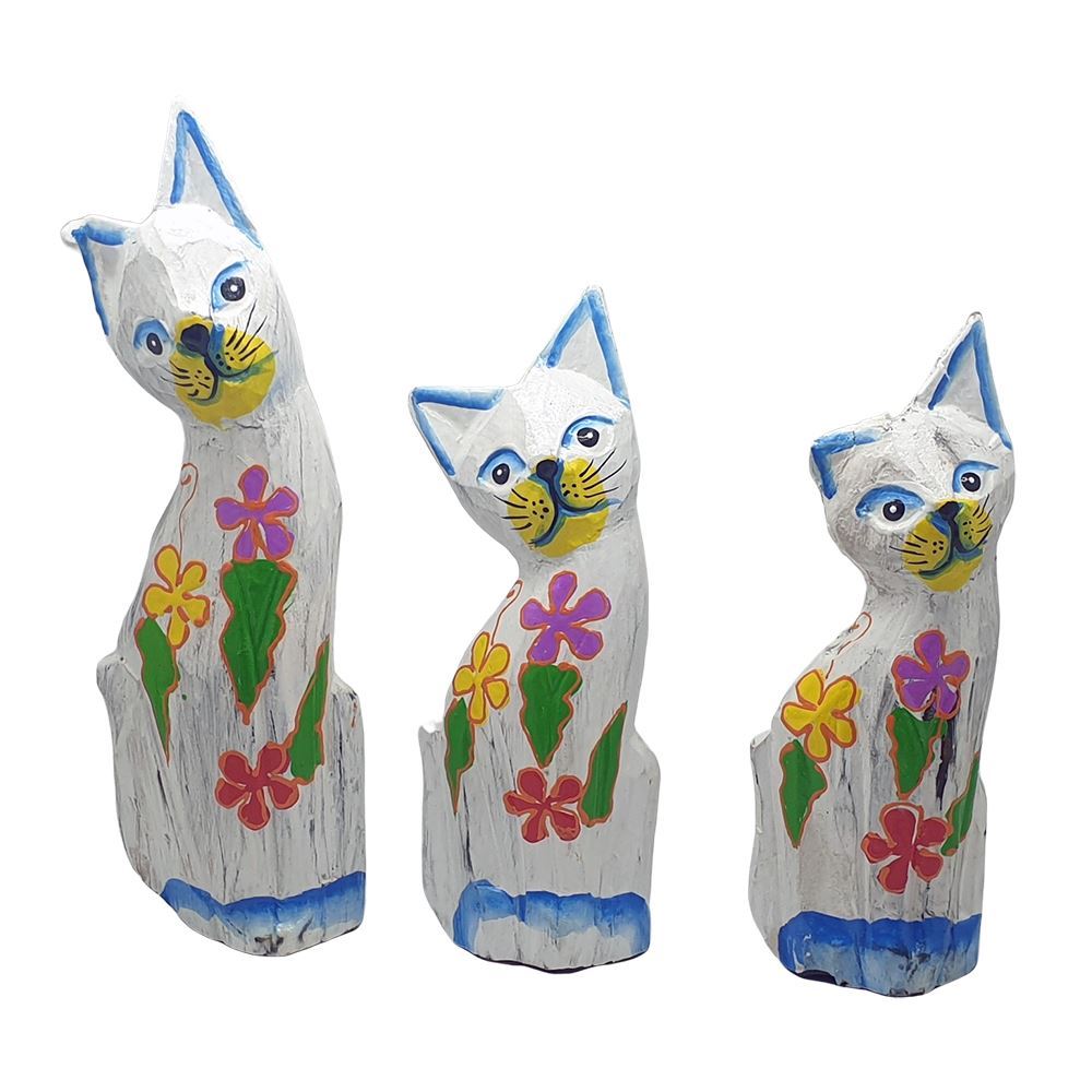 Each carving is one-of-a-kind and made entirely by hand. Very detailed artwork and excellent decor piece. A fantastic addition to any collection. This listing is sold as a set of 3 cats as seen in the pictures. Due to the hand-finishing process, there may be slight variations in finish/color with each piece.
