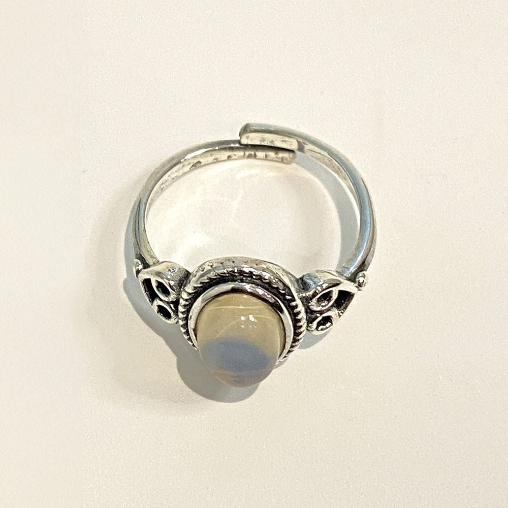 Silver-plated adjustable rings available in multiple designs and gemstone options, including Rose Quartz, Amethyst, Malachite, Turquoise, Black Onyx, and Opalite. Ideal for jewellery shops and gift retailers looking to offer customisable selections.