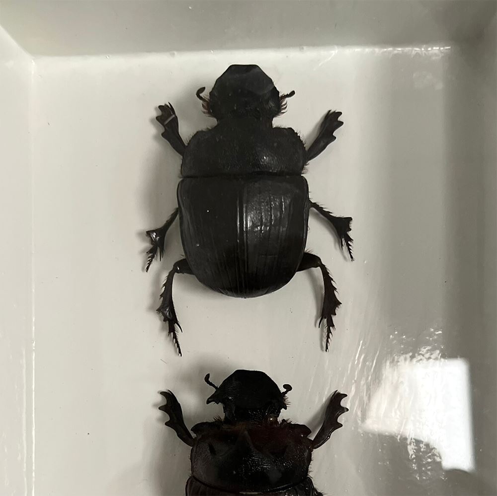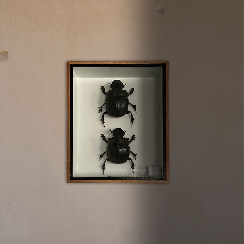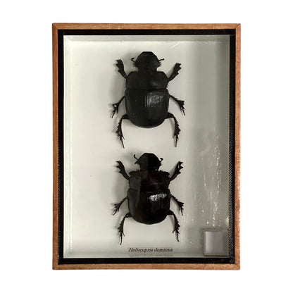 Taxidermy Dung Beetle, Pair, Mounted Under Glass, 20x15x5cm