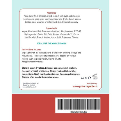 With only natural ingredients, this wipe-on bite relief for babies and children is ideal for repelling those nasty insects and their bites. Convenient and easy to use, the Mosquito & Insect Repellent Wipes is suitable against mosquitoes and other insects. The effective formula is safe and great for the whole family.
