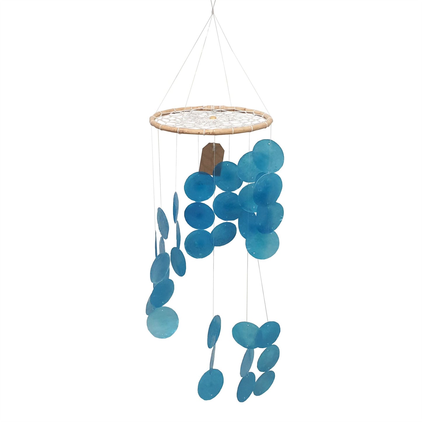 Capiz Shell Wind Chime, 45cm Hanging Height, Blue