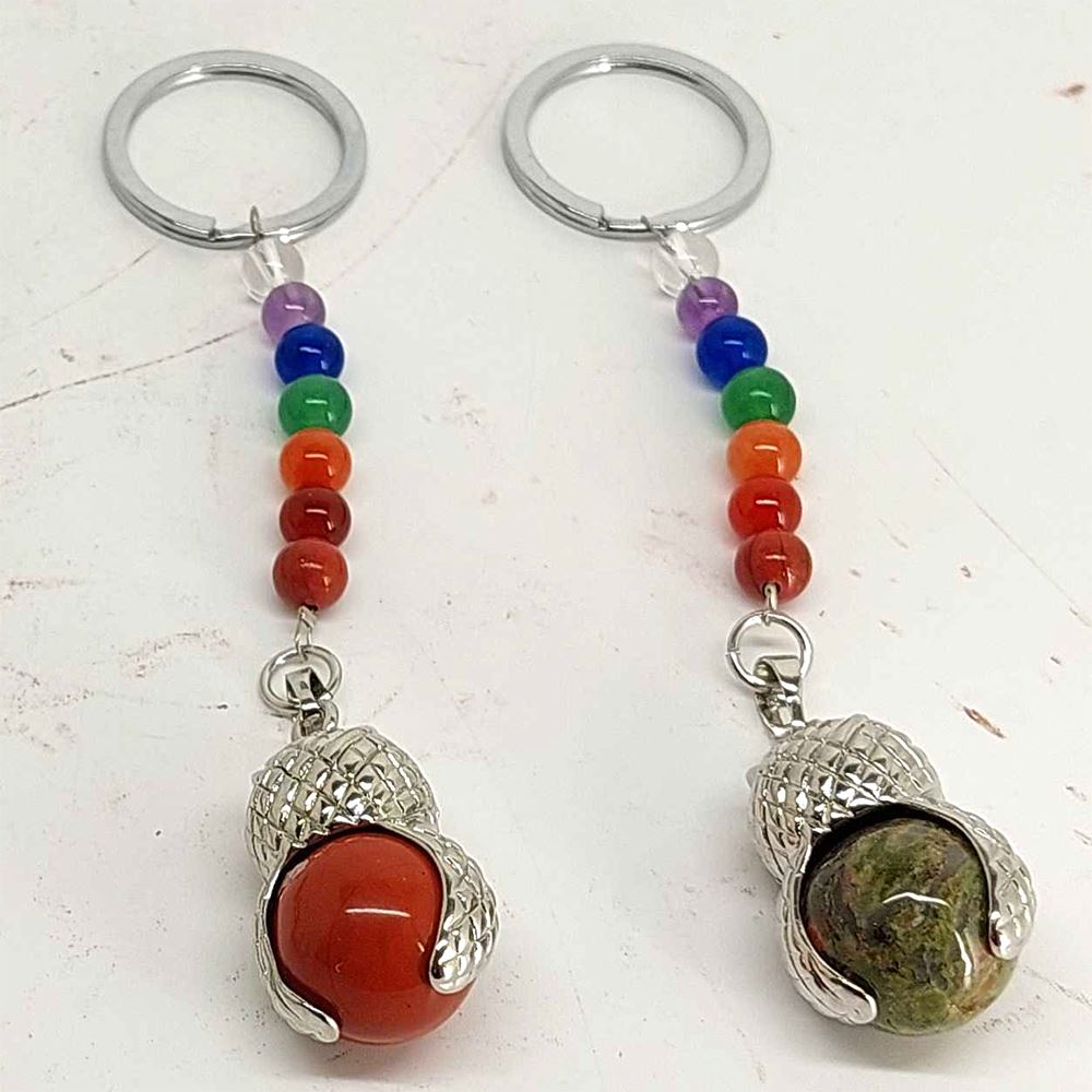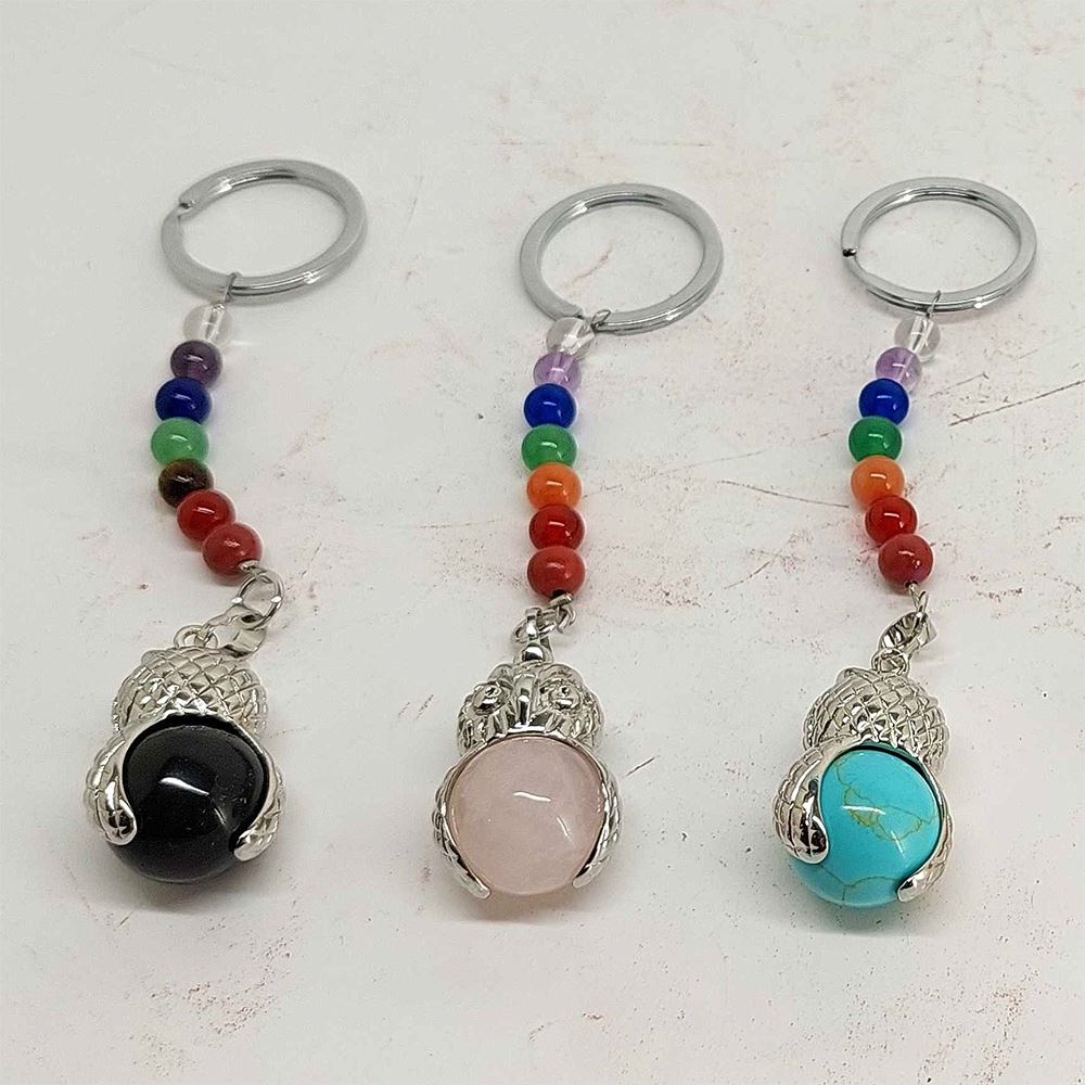 Chakra Jewelry, Mixed Gemstone Owl Keychain