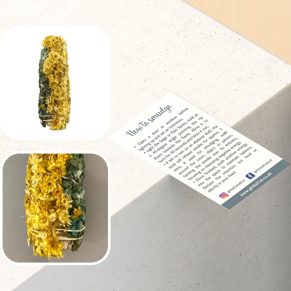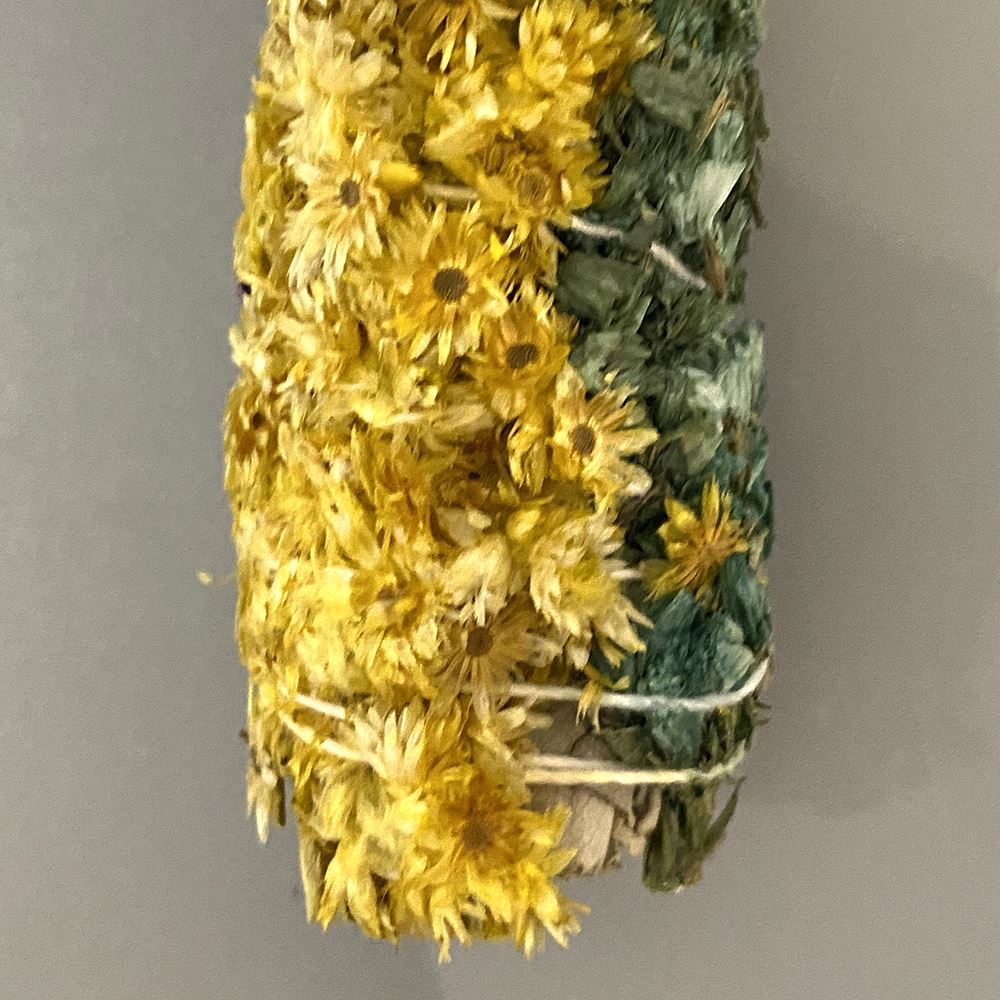 Infuse your space with elegance and positivity using our Floral Smudge Sticks. These beautiful smudge sticks feature an array of dried flowers, such as delicate rose petals and vibrant sinuata blooms, adding both visual charm and uplifting energy to your rituals. Their gentle, floral fragrance creates a calming and refreshing atmosphere, making them ideal for cleansing ceremonies, mindfulness practices, or simply adding a touch of natural beauty to your home. Let the enchanting essence of flowers transform your space into a haven of serenity and joy.