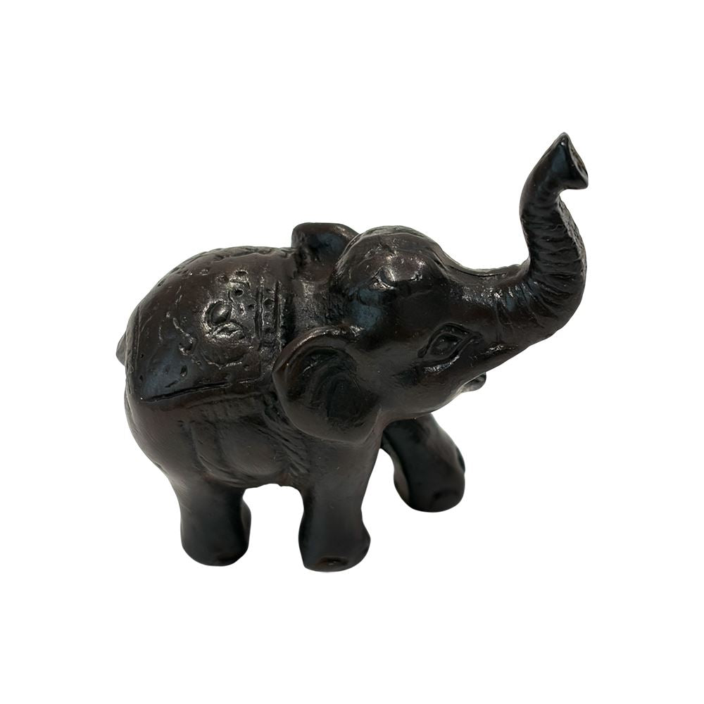 Small carved wooden elephant figurines in a rich dark finish, supplied in assorted poses and patterns. Each piece has a handmade feel and subtle variations, ideal for gift shops and home decor retailers.