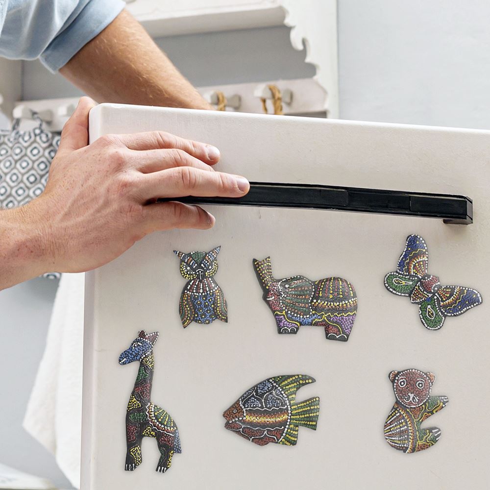 The Handmade Aborigine Design Animal Fridge Magnet -Set of 6 is modern and environmentally-friendly. Can be used for decoration or organization. Instantly organize all your important notes, timetables, papers, photos or postcards in the kitchen, office or classroom with these strong, unique and stylish magnets. You can also collect our different designs.